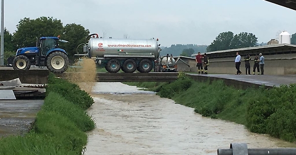 Salvi tutti i 2800 capi dell'allevamento grazie alle pompe idrovore che hanno buttato fuori l'acqua che ha invaso le stalle arrivando ad un'altezza di una ventina di centimentri.