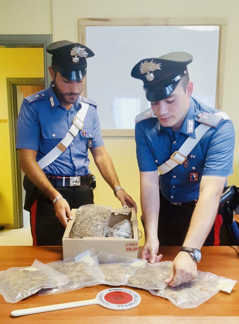 Al loro arrivo, i militari hanno trovato 5 buste in cellophane chiuse sottovuoto che contenevano ciascuna 50 grammi di marijuana. A questi 250 grammi totali se ne sono aggiunti altrettanti che si trovavano invece in una scatola di cartone, sempre nascosta nella stanza segreta.