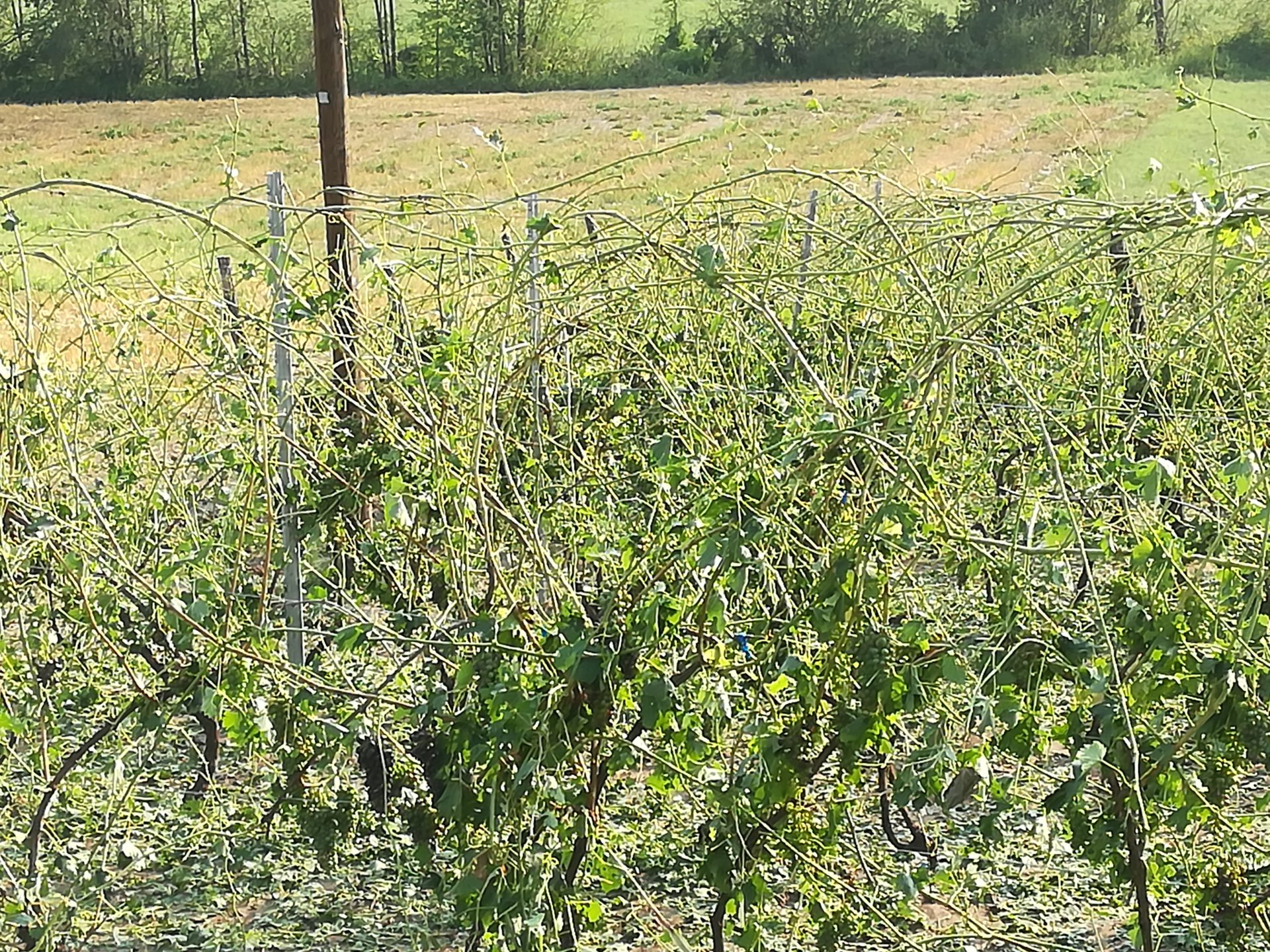 Ciò che resta nei filari dopo il temporale di oggi (foto Guru)