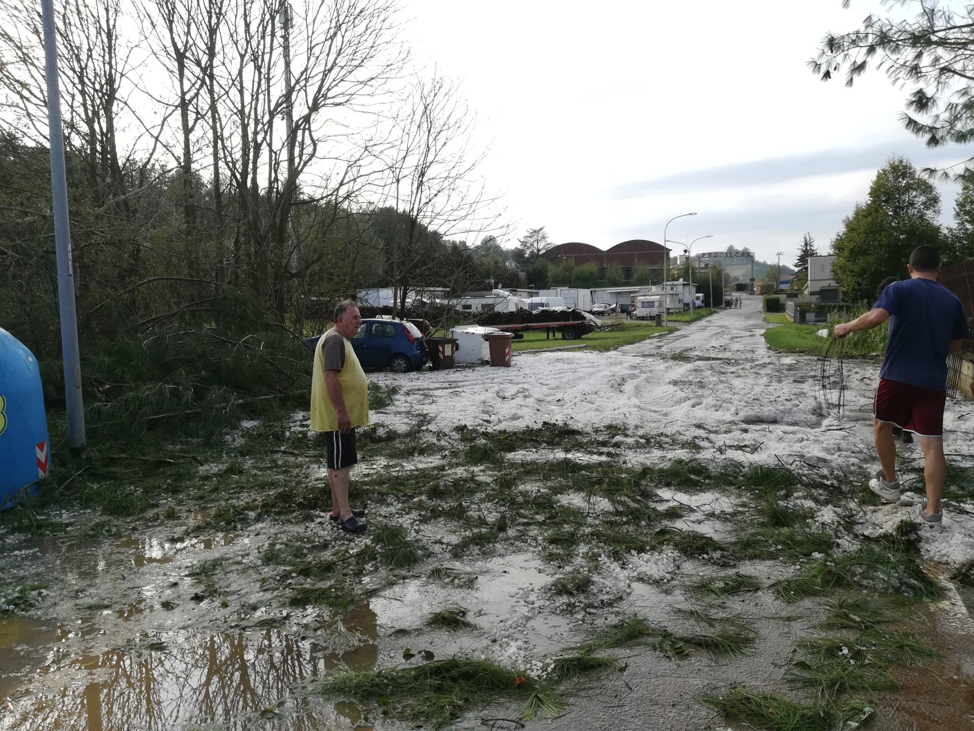 Mucchi di grandine anche sulla strada per il cimitero dove è anche caduto un albero, così come è accaduto sulle strade per le frazioni Bardella e Ranello.