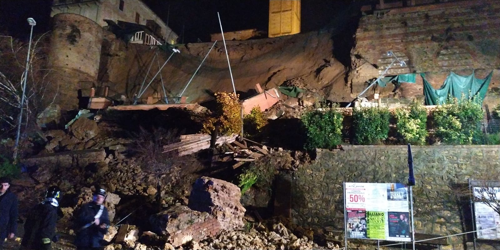 E' il muraglione di contenimento dell'antica cinta muraria che già a giugno aveva presentato qualche criticità con un primo smottamento risolto con la riapertura parziale di una carreggiata della strada.