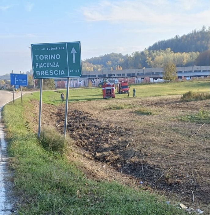 Intervento molto complesso oggi pomeriggio per i Vigili del Fuoco di Asti a Camerano Casasco, in un campo che costeggia la statale.