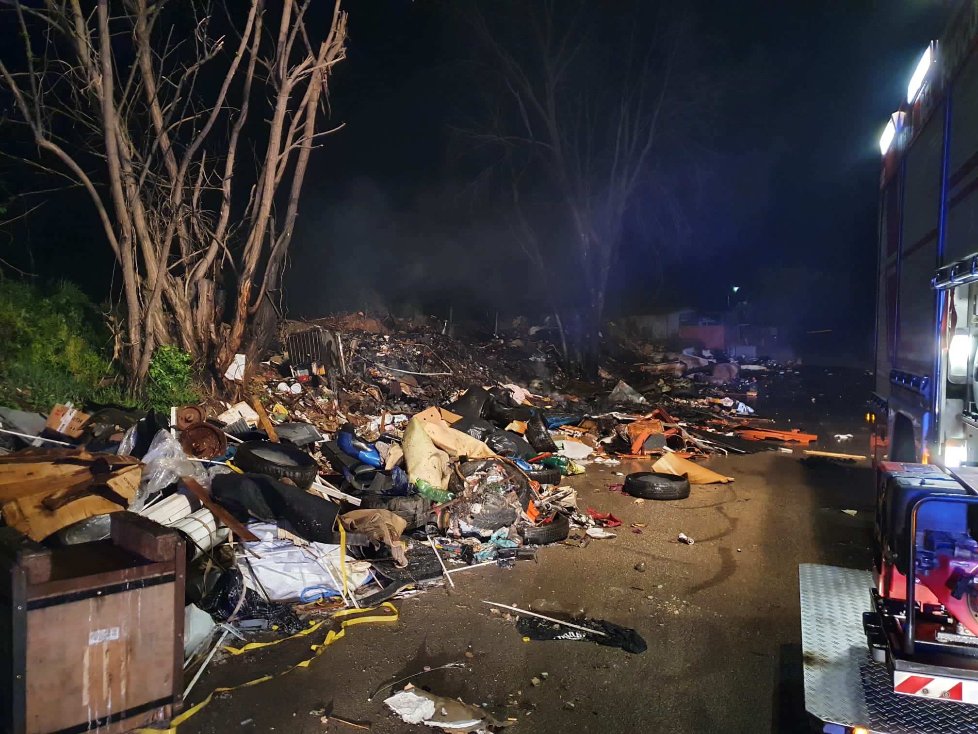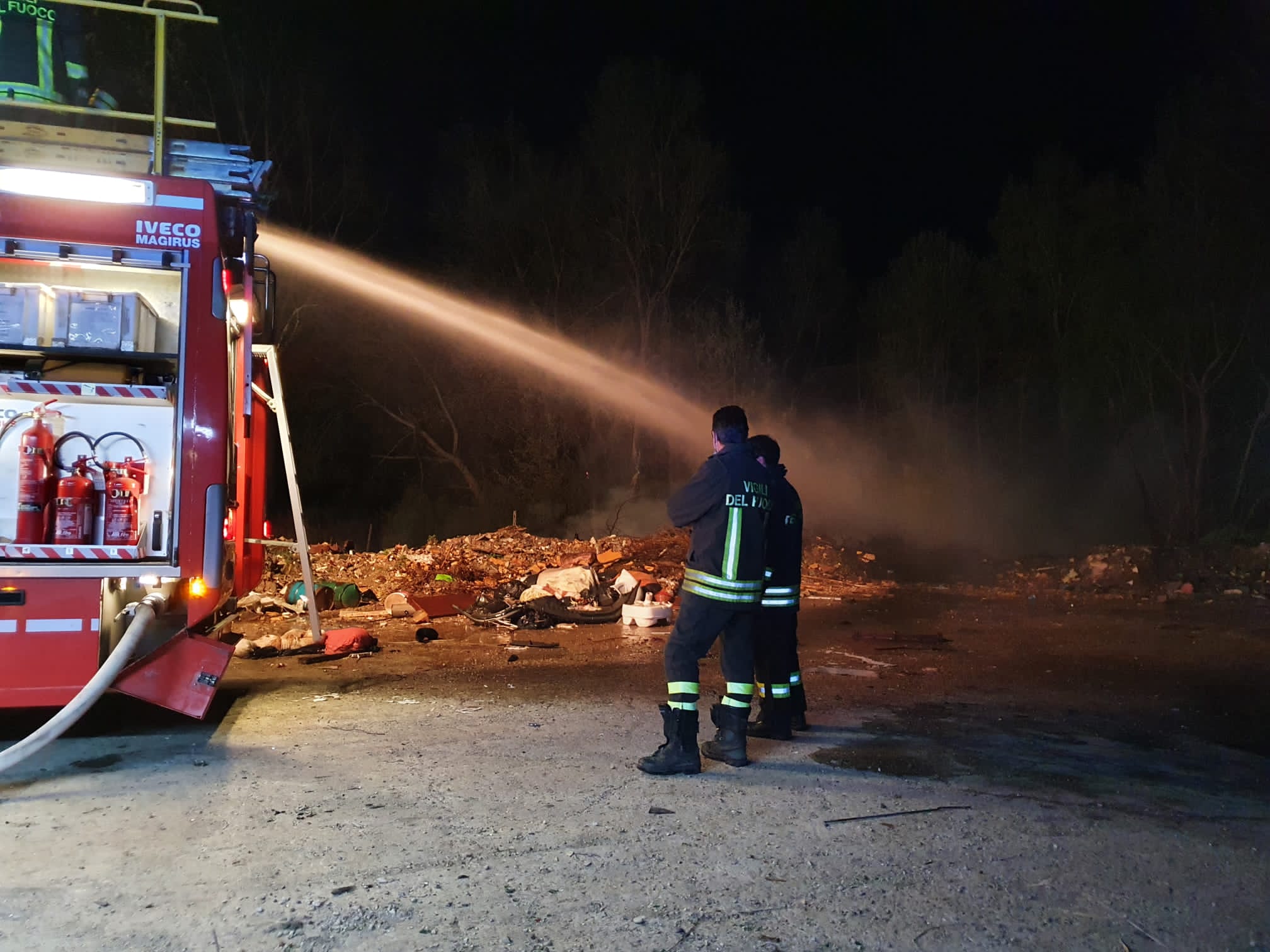 L'intervento è una "fotocopia" di quelli che purtroppo si susseguono ciclicamente: ovvero una montagna di rifiuti di ogni genere andata a fuoco: plastica di ogni genere, legno, bombole del gas, gomma, ingombranti.