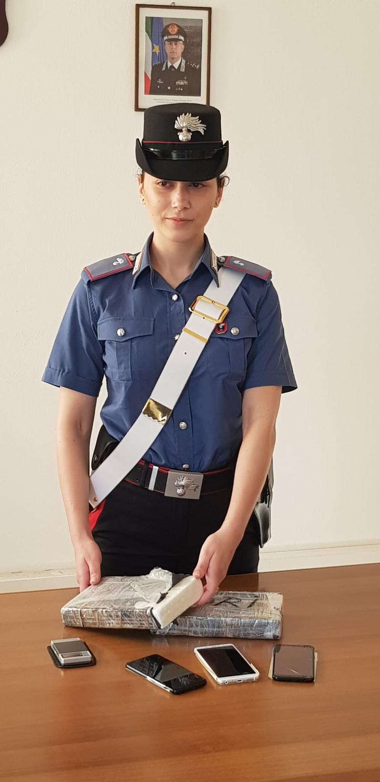 Un carabiniere mostra quanto sequestrato ai due arrestati
