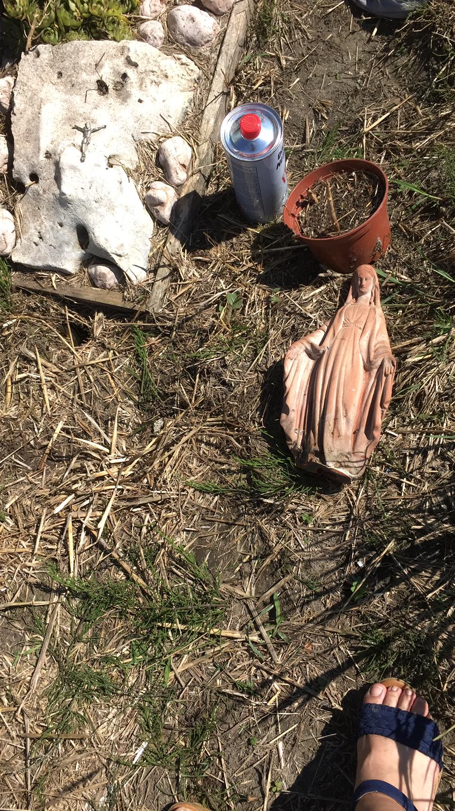 Domenico non si è perso d'animo. Appena visto quello che era stato fatto dai vandali si è subito attrezzato per ripulire tutto, per far sparire ogni segno di quello che era stato fatto e per riposizionare la statuetta della Madonnina al suo posto.
