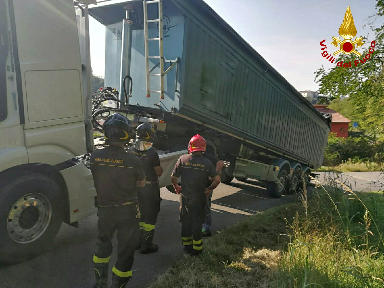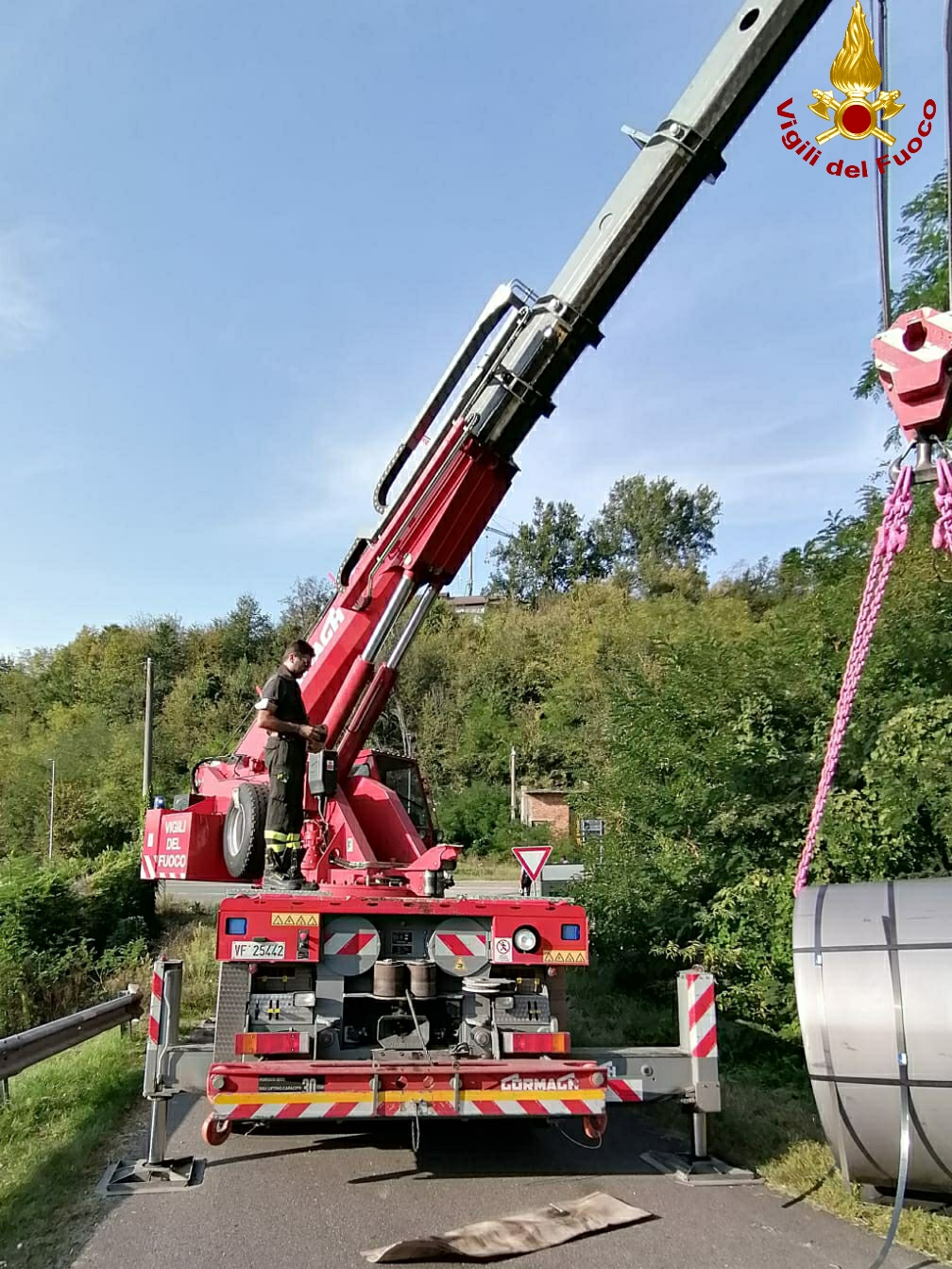 Bobina da 15 tonnellate sospesa per riportare il Tir in strada