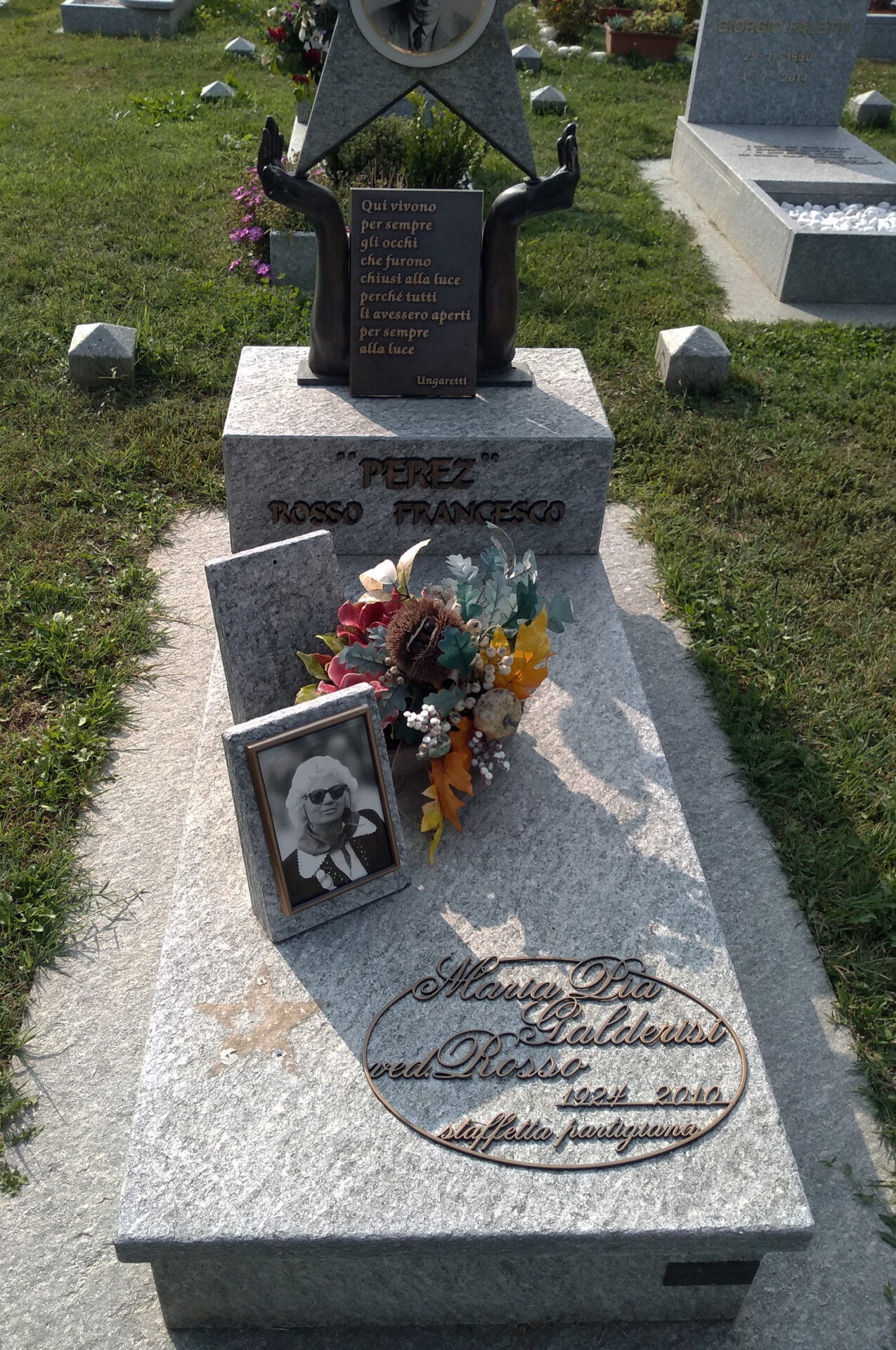 Una stella in brozon che ricordava il loro eroico contributo alla Resistenza è stata rubata dalla tomba del cimitero di Asti in cui sono sepolti Francesco Rosso e la moglie Maria Pia Galderisi. Rosso era noto con il suo nome di battaglia "Perez" e fu comandanti della Brigata Garibladi nelle Langhe, fondatore e poi presidente per 40 anni dell'Anpi di Asti. Accanto a lui, nella Resistenza e poi nella vita, Maria Pia, staffetta partigiana della stessa Brigata Garibaldi e proprio questa formazione era stata ricordata dalla stella in bronzo trafugata dal cimitero.