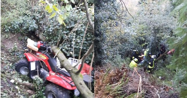 Ha riportato ferite lievi l'occupante del quad che ieri pomeriggio è rimasto intrappolato lungo una riva scoscesa in frazione Ranello a Castelnuovo Don Bosco. Sul posto sono intervenute diverse squadre dei Vigili del Fuoco, un'ambulanza da Chieri, i carabinieri e l'eliambulanza. Il problema più grande è stato trovare il ferito, perchè si trovava in una zona molto impervia ed è stato complicato comunicare l'esatta posizione ai soccorritori.