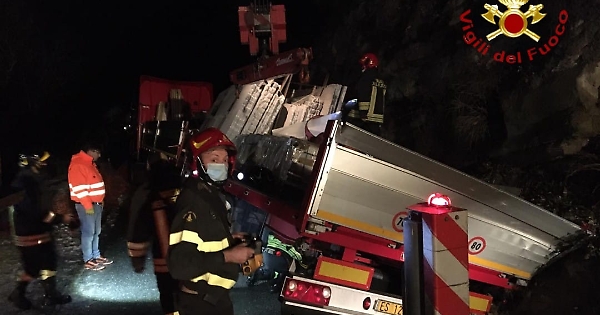 Un camion che trasportava delle lastre in metallo è finito leggermente fuoristrada, forse anche a causa della neve e delle banchine più cedevoli a causa del terreno inzuppato e non è più riuscito a rimettersi sulla carreggiata. Ci ha pensato una squadra dei Vigili del Fuoco che ha provveduto a riportare il mezzo sulla strada e a recuperare il carico di lastre che erano scivolate nell'appoggio della parte laterale destra nel fossato.