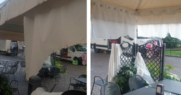 «Questa mattina, sabato 5 agosto, ho trovato tutte le tende tagliate, tutti i teloni danneggiati e i faretti staccati e rubati, con i cavi rotti e spezzati». È tramite un breve video di appena 30 secondi che la titolare del bar Sevenap di piazza Libertà, ad Asti, denuncia la devastazione subita dal suo dehors nella notte tra venerdì e sabato.
