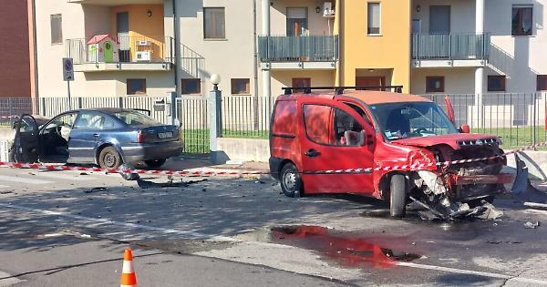 Scontro fra due auto all'incrocio di via Scotti nella tarda mattinata di oggi.