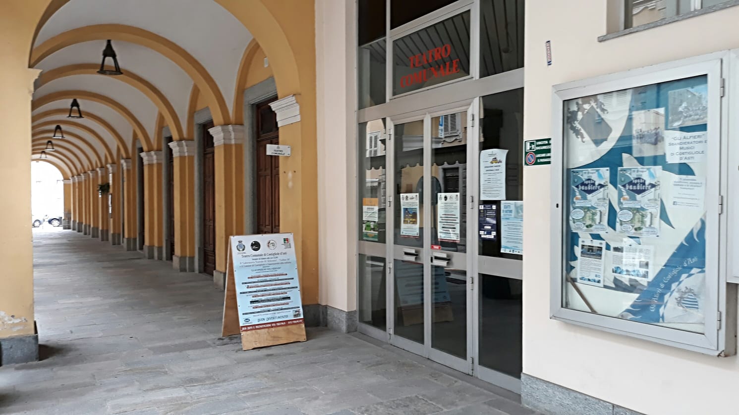 L'ingresso del teatro comunale di Costigliole d'Asti