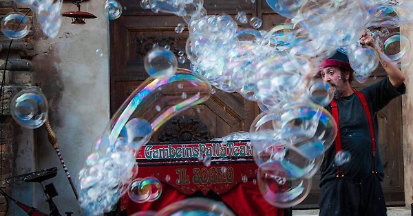 Sarà uno spettacolo all’insegna di poesia e comicità. Eros Goni, mimo e clown, si presenterà in scena, insieme alla compagna Lucie, con un carretto d’altri tempi. «Mostrerà il suo mondo - spiegano gli organizzatori - attraverso un viaggio dal sapore "antico", confuso tra sogno e realtà, romanticismo e comicità. E nel finale il pubblico sarà avvolto da migliaia di piccole bolle di sapone».