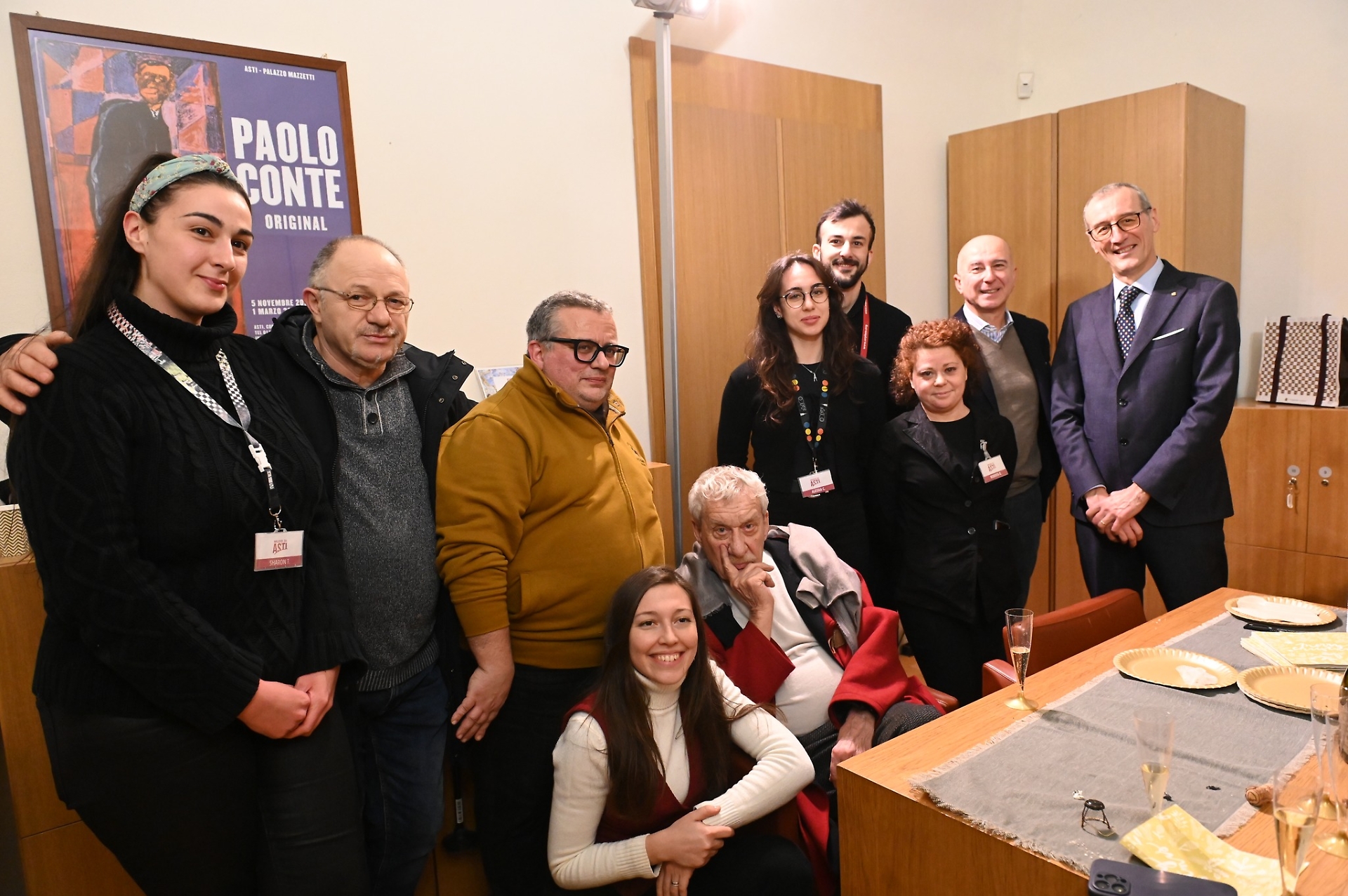 Paolo Conte insieme ai dipendenti di Palazzo Mazzetti e ai vertici della Fondazione Asti Musei