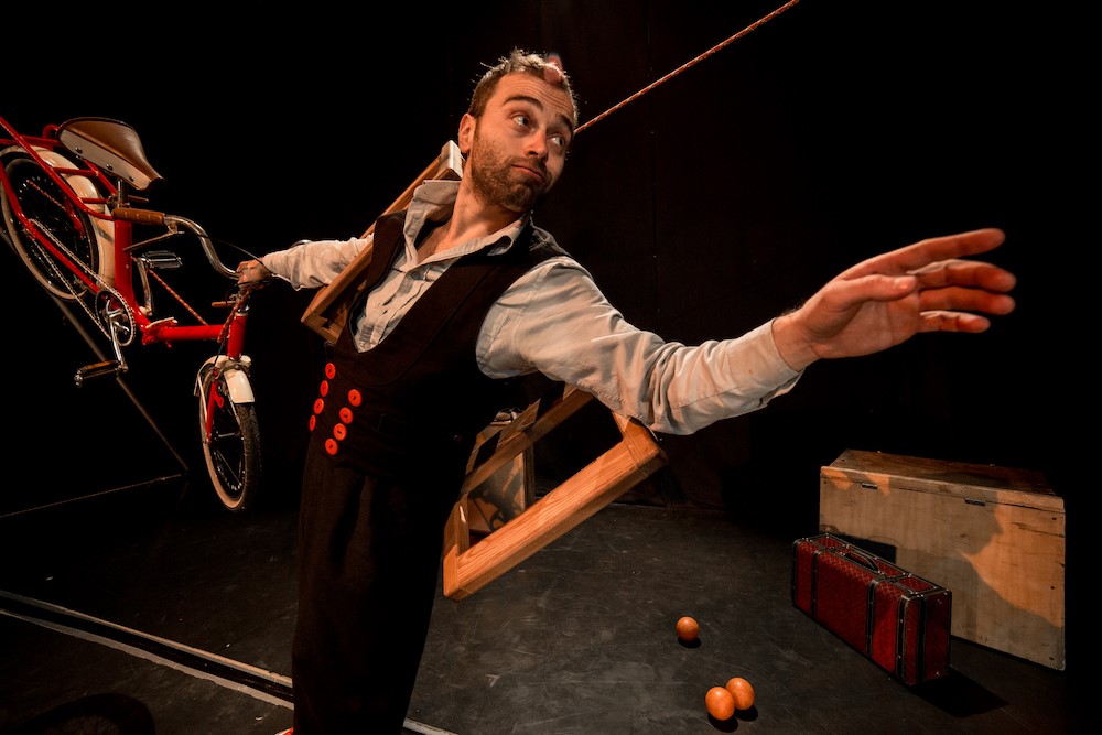 Uno spettacolo per tutte le età che mescola l’acrobatica, la giocoleria e la clownerie.