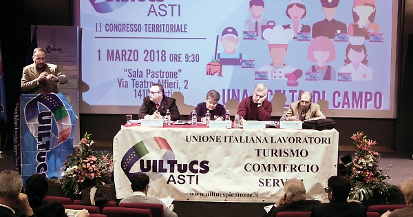 Di fronte una platea composta da 54 delegati, oltre a numerosi ospiti e autorità, Di Martino è intervenuto con una lunga e articolata relazione su diversi temi: dalla crescita della Uiltucs di Asti (che ha raggiunto circa mille iscritti) al rapporto con gli altri sindacati, dal tema della bilateralità alla situazione economica astigiana. «Ci aspettiamo - ha affermato a quest’ultimo proposito - un progetto coraggioso basato su terziario, vino e relativa filiera per promuovere una rinascita del territorio, il tutto collegato ad una forte vocazione universitaria da cui tragga vantaggio l’intero centro città».