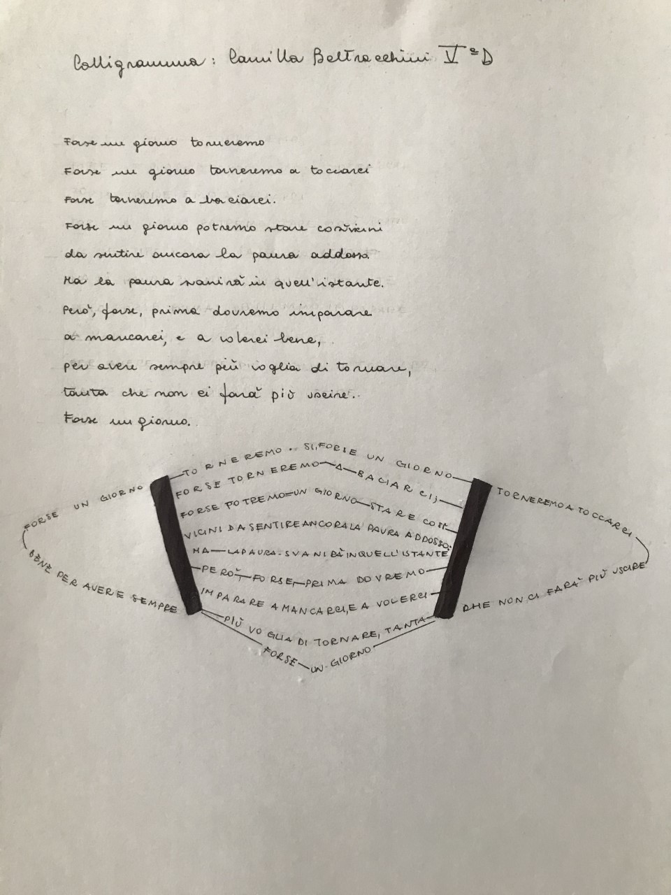 «Ho chiesto agli alunni - specifica l’insegnante - di esprimere il loro stato d'animo in epoca di pandemia, utilizzando nuovi canali comunicativi: i calligrammi, le composizioni poetiche che diventano immagini e la tecnica del componimento-collage di ispirazione dadaista.