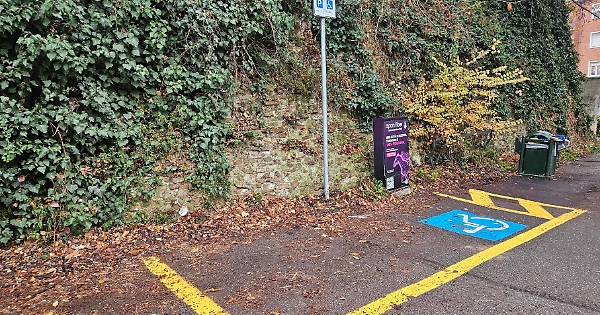 Il nuovo stallo giallo per disabili disegnato in salita Morra, a ridosso delle Antiche Mura