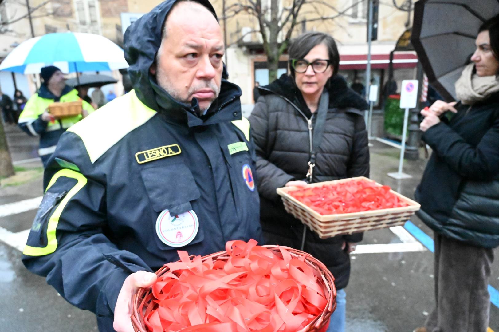 Ai piedi dell'altare anche i gonfaloni dei Comuni che hanno indetto il lutto cittadino; ad accompagnare quello di Nizza Monferrato è stato lo stesso sindaco Simone Nosenzo, con fascia tricolore a dimostrazione della vicinanza di tutta una comunità.