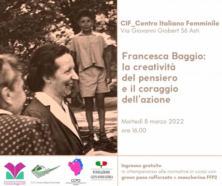 Una è quella di Francesca Baggio (1907-1993), definita “la protettrice delle donne di Asti”. La sua candidatura è stata proposta dalla Regione Piemonte e per la sua menzione è avvenuta già la premiazione a Roma.