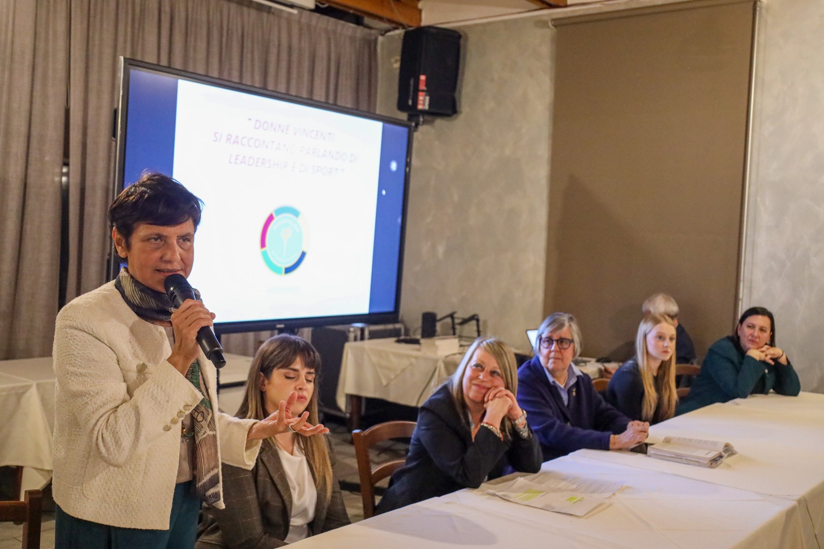 A completare il prestigioso "parterre", la prof.ssa Adriana Balzarini, storica dello sport, vicepresidente del Panathlon Distretto Italia e autrice di numerose pubblicazioni, che ha illustrato la sua più recente opera, "Le donne di Cortina 1956".