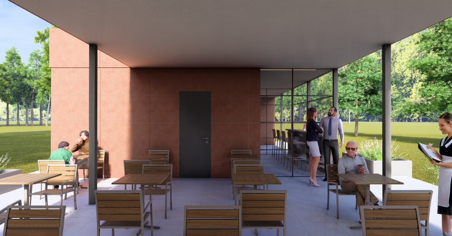 Il rendering del futuro chiosco nel parco del castello di Costigliole d'Asti