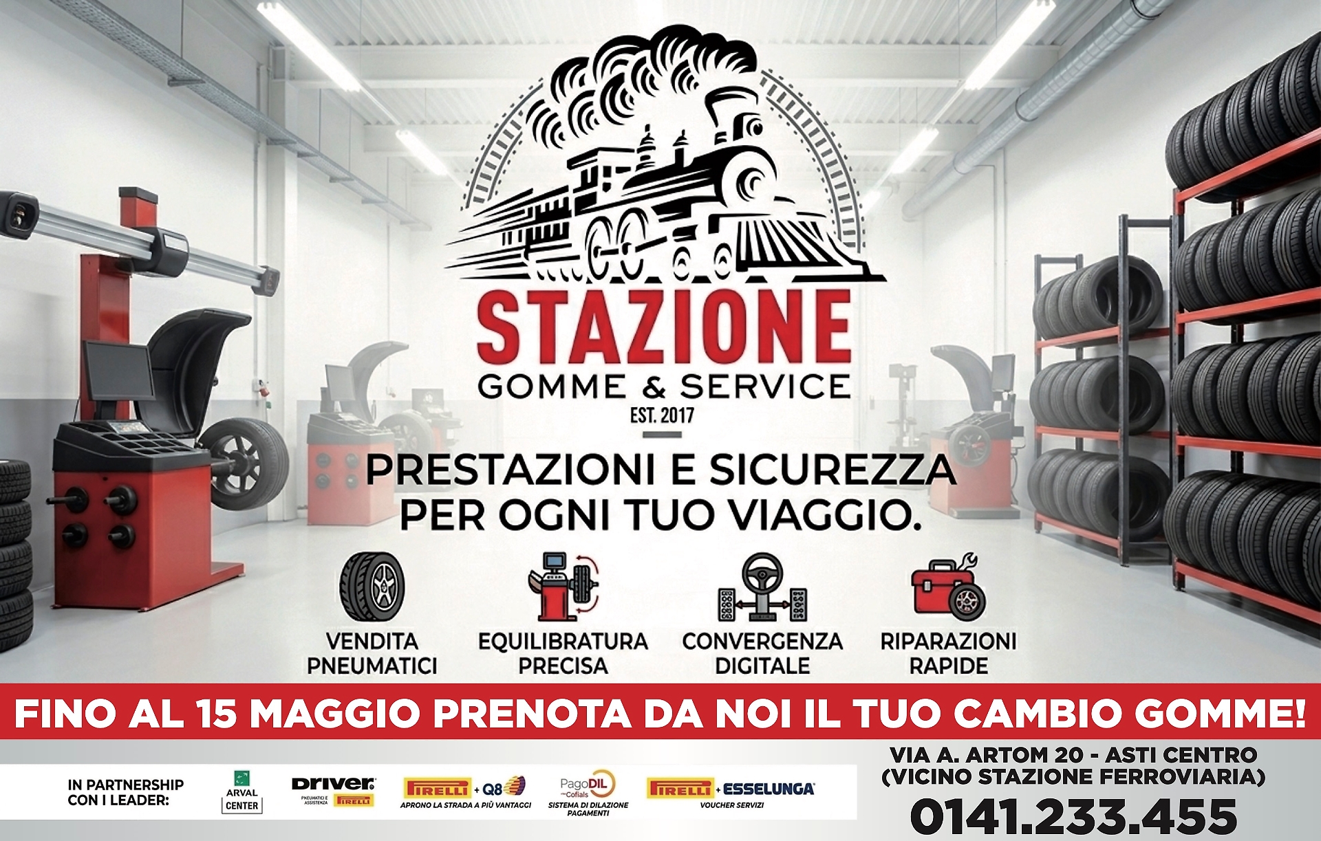 Stazione Gomme & Service si trova in ad Asti, in via Artom e a Chieri