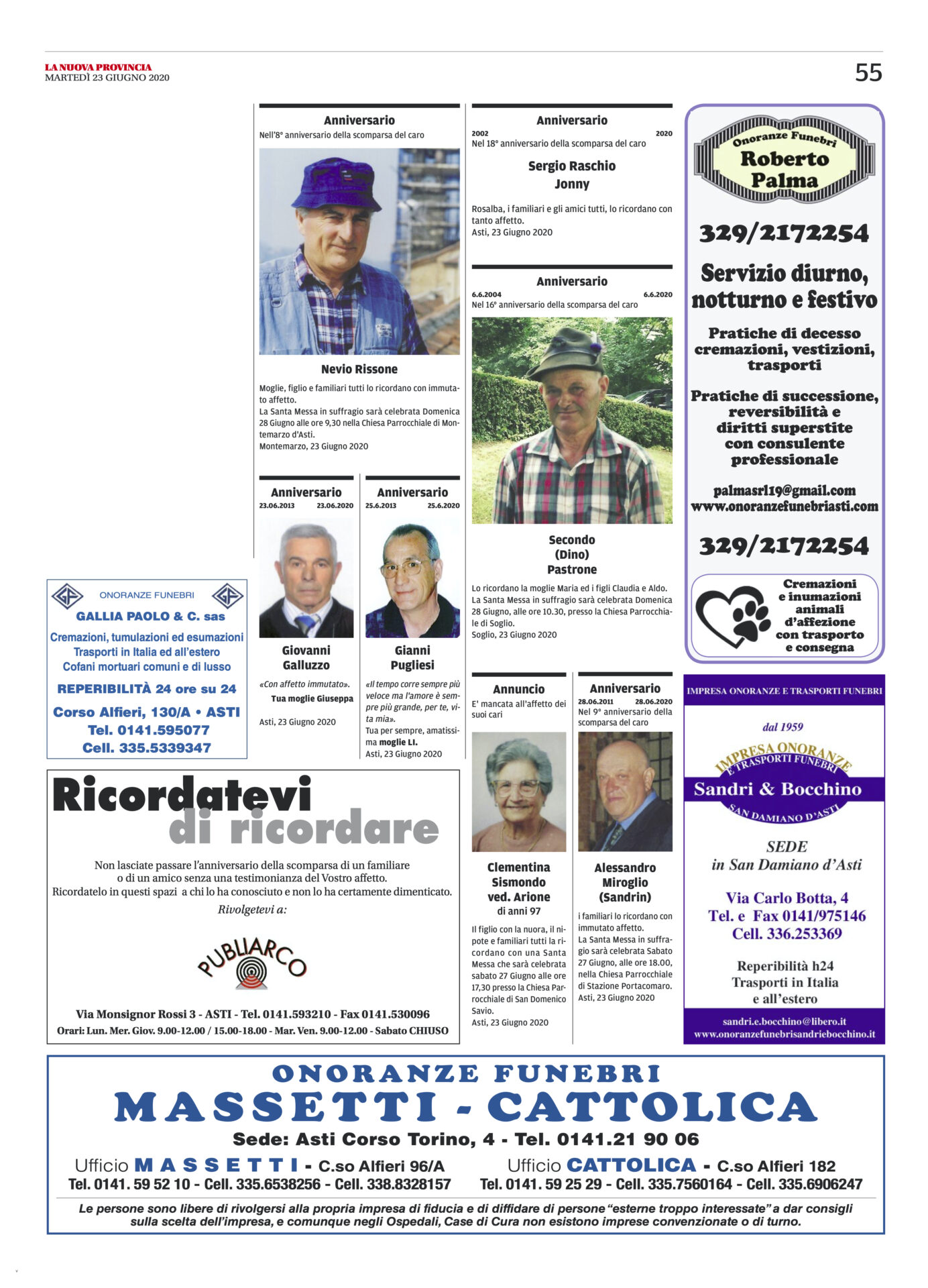 Aut. Tribunale di Asti n. 61 del 25/09/1953Direttore Fulvio Lavinaf.lavina@lanuovaprovincia.itSocietà editrice Editrice OMNIA S.r.l.via Monsignor Rossi 3 -14100 AstiP.Iva 00080200058