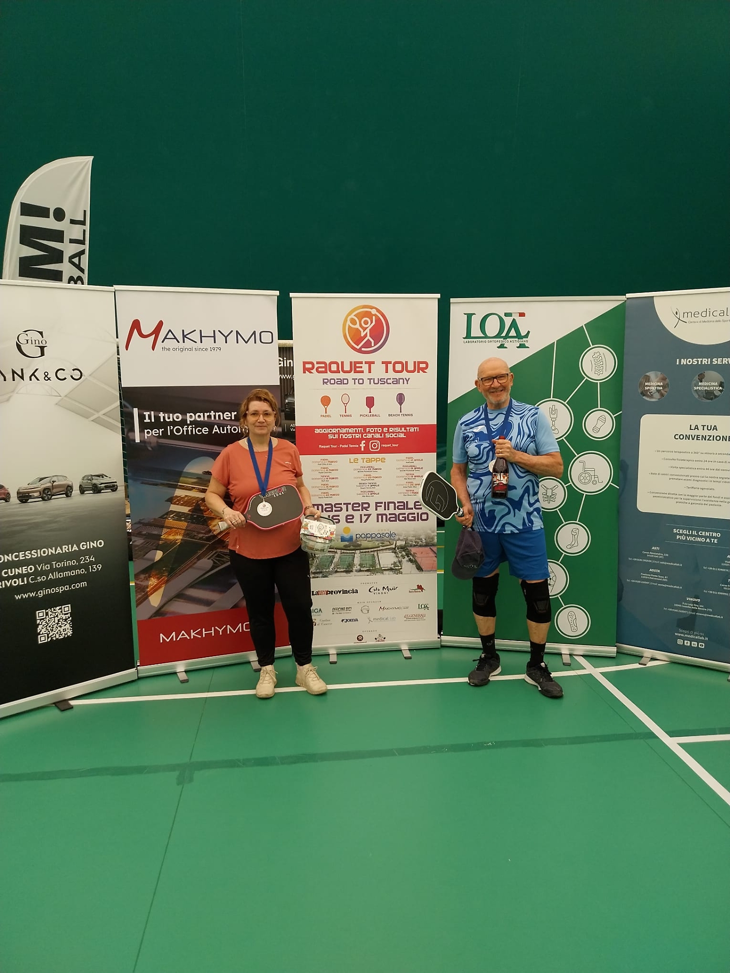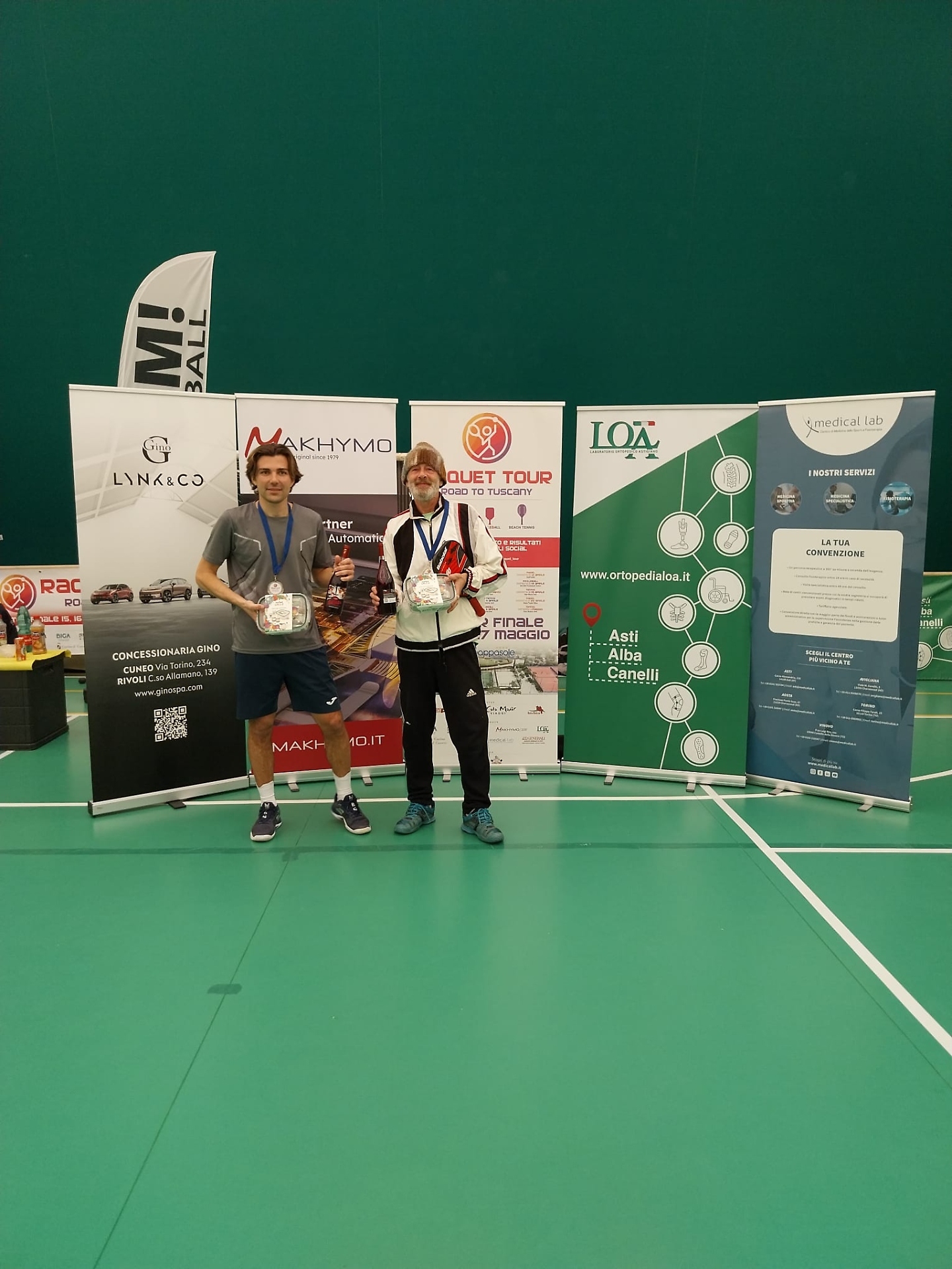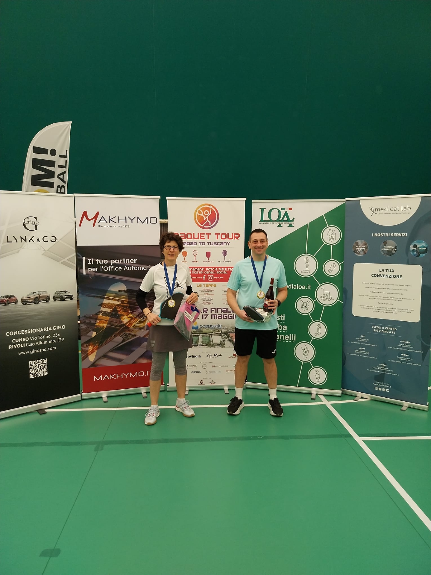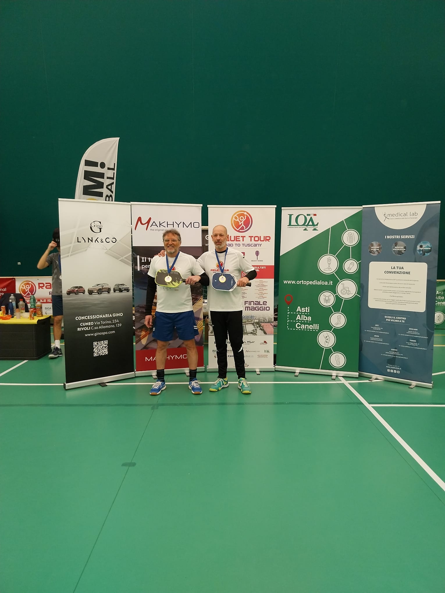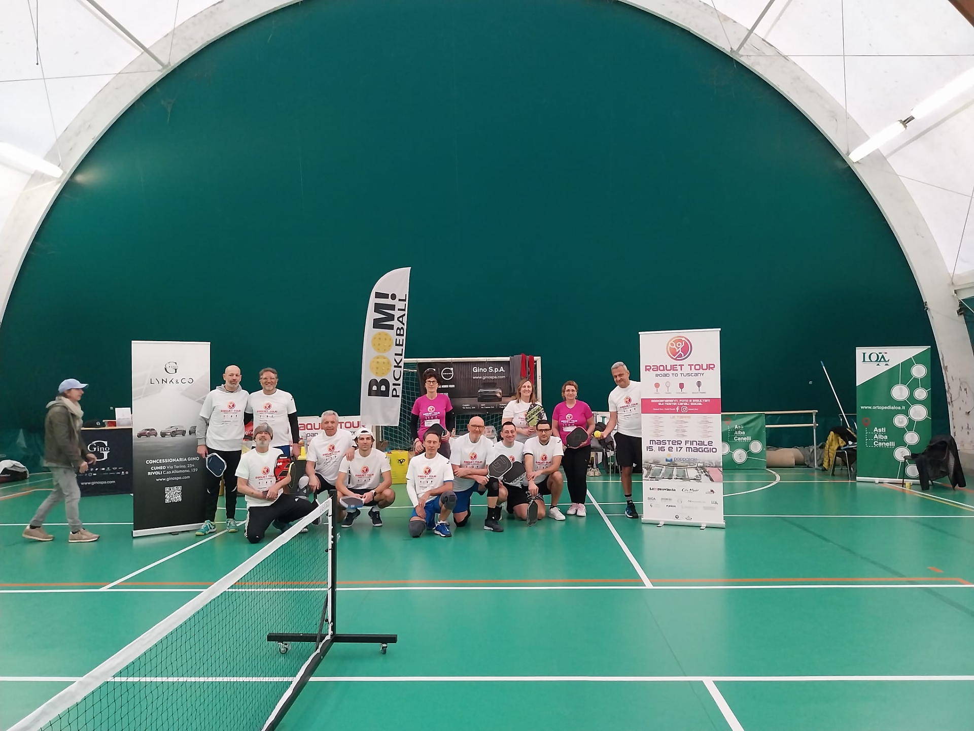 A fare gli onori di casa nella magnifica location del TC Country Club di Pino Torinese le anime pulsanti del gruppo Boom Pickleball Marcello Carlone e Renato Ronchi, che hanno seguito l'evoluzione dei due tabelloni proposti all'interno della nuovissima "Boom Pickleball Arena", quello di doppio maschile e quello dedicato al misto, alla presenza anche delle auto di Gino Mercedes, tra i partner della manifestazione.