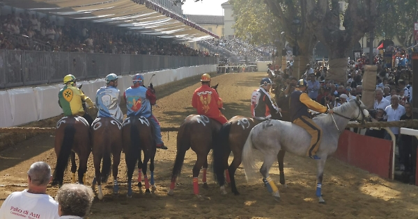 Da pochi minuti è terminata la prima batteria del Palio di Asti 2019. Alla partenza c'erano Santa Caterina, San Silvestro, San Paolo, San Lazzaro, San Marzanotto, Torretta e Viatosto.