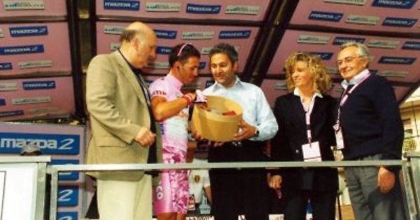 Nella foto: Gilberto Simoni e Candido Cannavò nel 2003, quando il giro partì da Canelli.