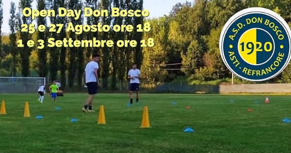 In casa Don Bosco sono in cantiere quattro giorni dedicati agli aspiranti calciatori che vogliono scoprire lo staff gialloblù e la bella location di Refrancore. Per i bambini e le bambine dai 5 anni in su si svolgerà infatti un open Day il 25 e 27 agosto alle ore 18, e l’1 e 3 settembre alla stessa ora. Per info sull’open Day è possibile contattare la segreteria del Club al 351/6656814 o mister Marco Patti al 340/4706970.