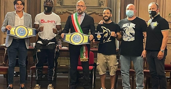 La giunta ha ricevuto oggi, martedì 21 settembre, in municipio Nourdine Hassan, Etinosa Oliha, Davide Greguoldo e Maria Fiori per congratularsi ufficialmente con la Skull Boxe. Nourdine Hassan ha vinto sabato 18 settembre il titolo italiano dei pesi superpiuma. El Chapo è l’attuale campione italiano dei pesi medi. Quest’ultimo aveva già ricevuto nel febbraio 2020 il “sigillo” della città, riconoscimento che è stato conferito al neo campione, El Tiburon. “Due splendidi ragazzi che mi hanno da sempre colpito non solo da un punto di vista agonistico e sportivo ma anche e soprattutto dal lato umano per la loro gentilezza, semplicità e disponibilità. Complimenti davvero. Asti vi ringrazia!”, dichiara l’assessore Mario Bovino, presente assieme al sindaco Maurizio Rasero e altri rappresentanti della Giunta in un martedì speciale per lo sport locale. Dopo la querelle legata ai tatuaggi razziali di Broili, avversario sabato scorso di Hassan, nella serata di martedì anche il TG1 ha parlato dell’accaduto e intervistato il pugile di origine marocchine.