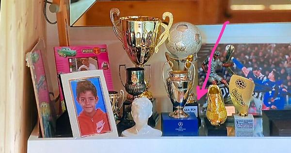Il trofeo del "Settembre Astigiano SCA" di Ronaldo Junior nella sua bacheca a Manchester