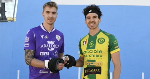 Doppio importante appuntamento casalingo nel fine settimana per le due formazioni castagnolesi di pallapugno. Nella serie A, domani, sabato 8 ottobre, allo sferisterio "Remo Gianuzzi", l'Araldica di Cristian Gatto, Davide Amoretti, Michele Vincenti e Andrea Bianco, ospiterà il Cortemilia (Massimo Vacchetto, Federico Gatto, Marco Parussa e Francesco Rivetti), campione d'Italia in carica, nel match di ritorno della semifinale dei playoff. La partita inizierà alle 16. All'andata successo dei cuneesi per 11 a 3. Gli astigiani tenteranno il tutto per tutto per portare i rivali alla "bella". La formazione che prevarrà affronterà in finale l'Imperiese. Nella C1, il quartetto del Castiati Castagnole scenderà in campo domenica, inizio alle 15, contro il Gottasecca, nella finale di ritorno del campionato di categoria. Nel primo confronto, giocato sul loro campo, i cuneesi avevano avuto la meglio per 11 a 5. Anche in questo caso il team astigiano dovrà imporsi per portare gli avversari allo spareggio. Nella foto, Cristian Gatto, a sinistra, e Massimo Vacchetto.