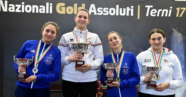 Francesca Gentile dopo l’ottimo girone, con 6 vittorie su 6, e il 2 posto nella classifica provvisoria che le permette di superare di diritto le prime 2 dirette. Inizia le dirette sconfiggendo per 15 a 12 Pasqua Carlotta della società Frascati Scherma mentre nelle successive dirette vince agevolmente contro Tosi Alice della Pro Patria di Busto Arsizio per 15 a 7 e Calvanese Alessandra del CS Salerno per 15 a 5. Nei 16i vince contro Petrella Arianna per 15 a 13 mentre nelle semifinali incontra e supera in rimonta 15 a 12 Rosiello Giulia del Posillipo Napoli. In finale vince l’incontro finale con l’atleta di Torino e conquista il campionato nazionale Gold.