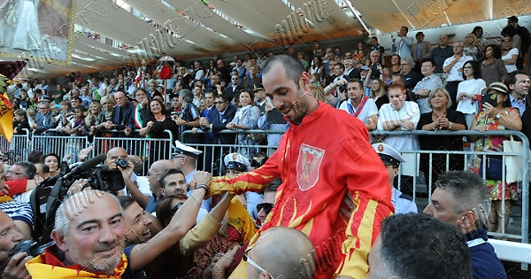 Ci riproverò nel 2016, dando il meglio di me. Conosco bene lo spirito con il quale la Torretta scende in Piazza. Io non posso né smentirlo né tradirlo. Ho sulle spalle unincombenza non di poco conto, ma non mi spavento. Non garantisco la vittoria, poichè nessun fantino ragionevole potrebbe farlo. Limponderabile e le dinamiche di corsa rappresentano un qualcosa di imperscrutabile. Ma al Borgo biancorossoblu e al Rettore Giovanni Spandonaro, un uomo di grande carisma che ha saputo toccare le corde giuste per orientare la mia decisione, dico di dormire sonni tranquilli. Saremo in primissima fila.»