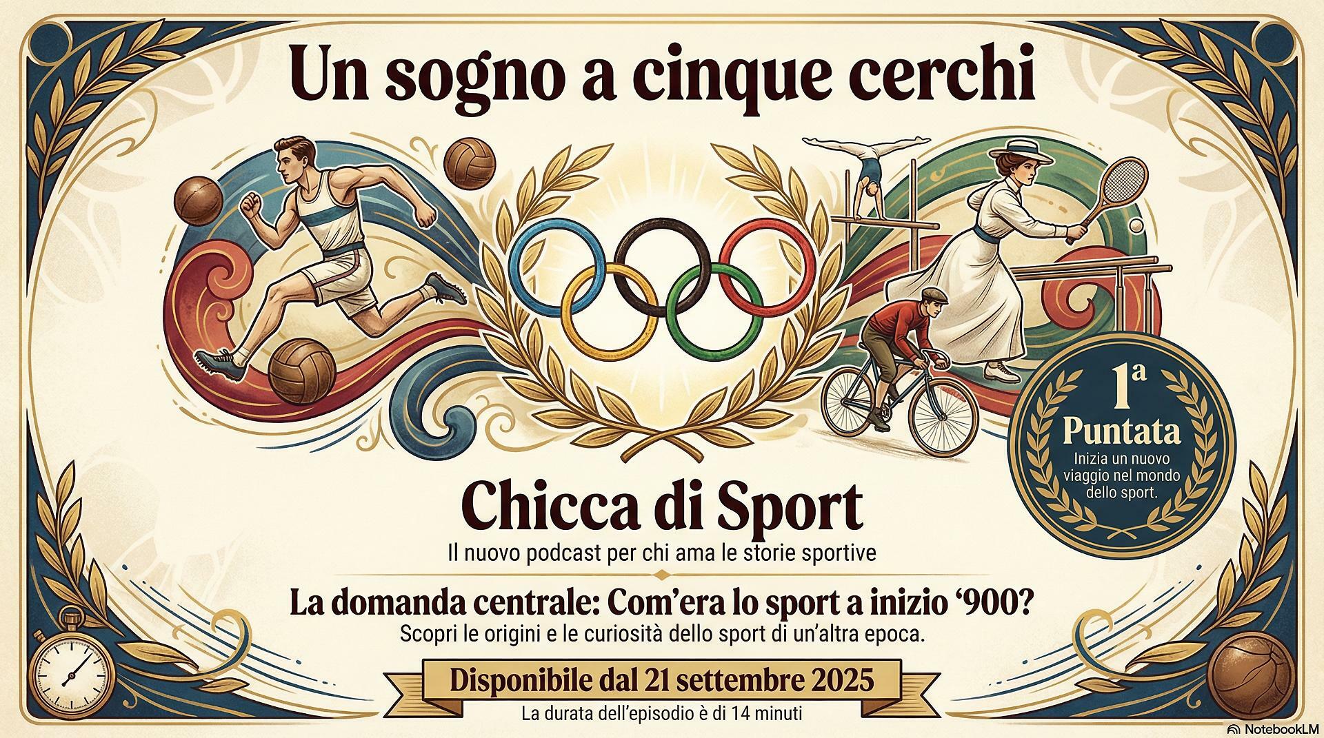 Benvenuti a un viaggio nel tempo, una narrazione che ci riporta alle radici del mito. Immaginate di premere il tasto play e di essere trasportati in un'epoca dove lo sport non era solo competizione, ma un'epopea romantica e pionieristica: stiamo parlando della prima puntata del podcast "Chicca di Sport", intitolata "Un sogno a cinque cerchi".