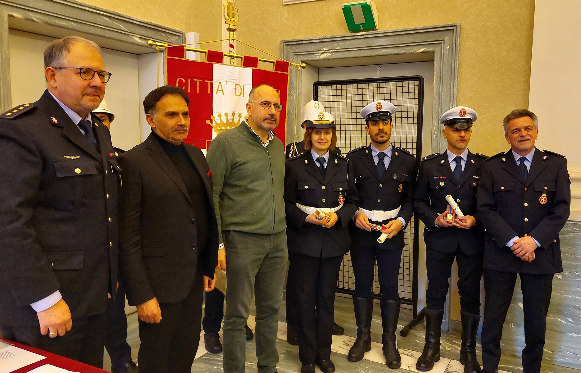 La recente festa di San Sebastiano è anche stata l’occasione per consegnare gli encomi regionali per interventi particolarmente importanti di appartenenti alla Polizia Municipale d Asti. A ricerverne uno è stato il commissario e vice comandante aggiunto Graziella Ivaldi insieme agli agenti scelti Davide Allegretti e Roberto Graziano per il salvataggio di una donna dall’intenzione di porre fine alla sua vita. Un fatto del marzo 2024 in via Grassi.