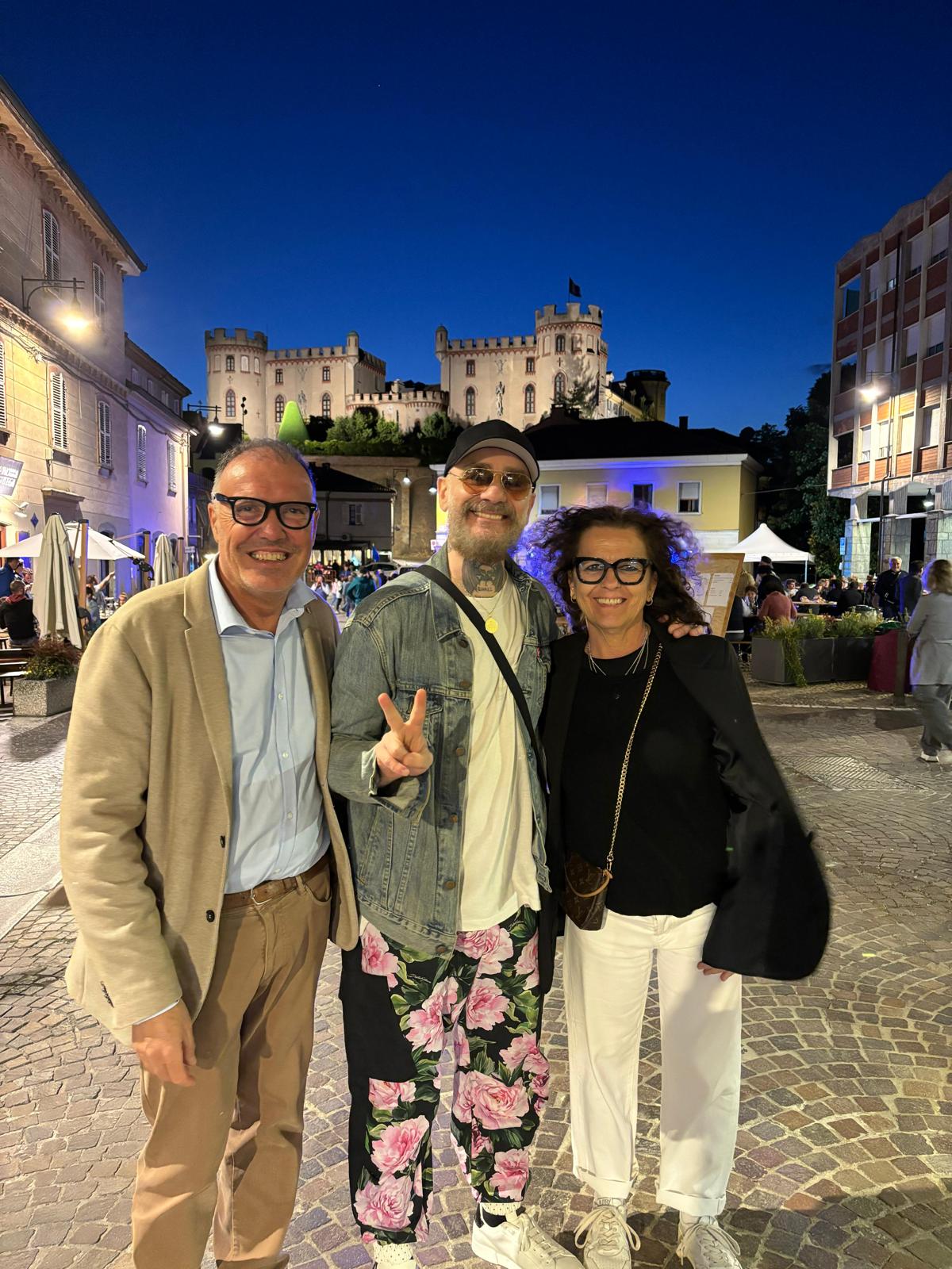 J-Ax insieme al sindaco Enrico Cavallero e al vicesindaco Laura Bianco a Rosso Barbera al castello di Costigliole d'Asti
