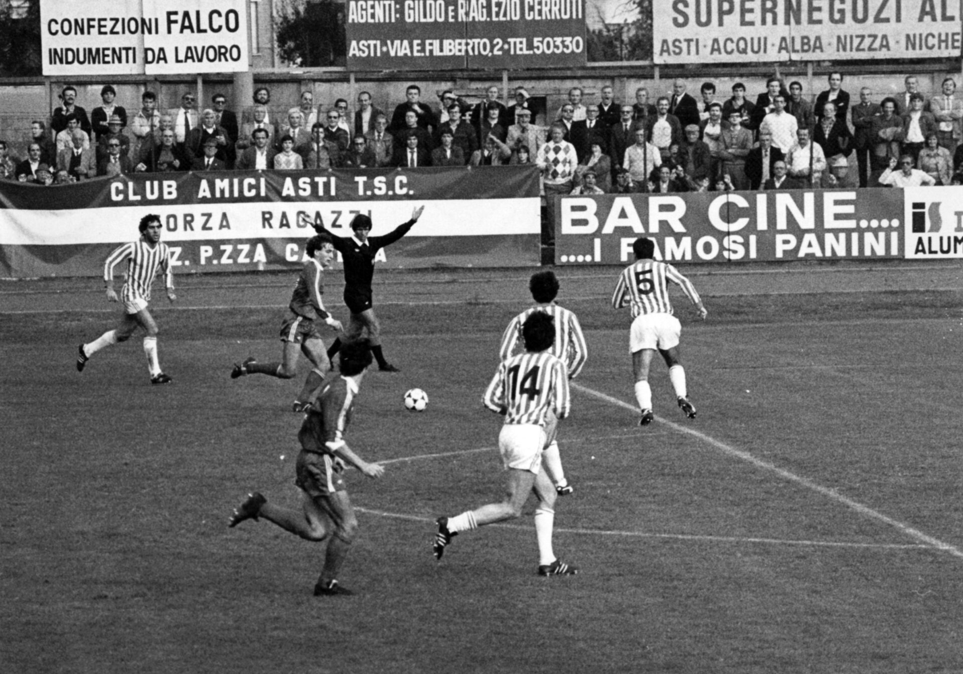 La Macobi degli anni Sessanta viene imitata appunto dalla Torretta S.C., nata nel ’69 e promossa in “C2” nell’80 sotto la presidenza del commendator Giuseppe Nosenzo. Allenato da Giovanni Sacco, diventato tecnico dopo aver indossato la maglia biancorossa per due stagioni ed essere stato sulla panchina della “Berretti” durante l’annata ’78-79, l’Asti arriva quarto a pari punti col Pontedecimo, e una ventina di giorni dopo, esattamente il 15 giugno 1980, diventa Asti T.S.C. in seguito alla fusione con la Torretta. La nuova squadra affronta la “C2”, ma arriva ultima e retrocede così nel neonato Campionato Interregionale dopo un’annata vissuta in mezzo a un’acerrima quanto assurda rivalità, a livello dirigenziale ma anche sugli spalti, tra ex biancorossi ed ex rossoblù. Presieduto dal commendator Nosenzo, l’Asti T.S.C. era stato guidato in panchina prima da Bruno Nattino, poi dall’ex calciatore della Nazionale azzurra Angelo Domenghini e infine dal pugliese, ma astigiano di adozione, Raffaele Cuscela (classe 1925), ex terzino del Torino e artefice della salvezza in Serie D ottenuta nel ’79 dall’Asti del presidente Gastino.