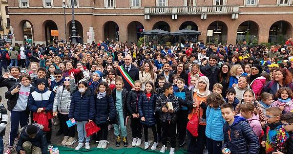 Lo speaker della manifestazione, Beppe Giannini, ha quindi invitato i bambini a pronunciare questa frase di sostegno alla candidatura della città: "Non sarà, ma se fosse, Asti capitale della cultura 2025".