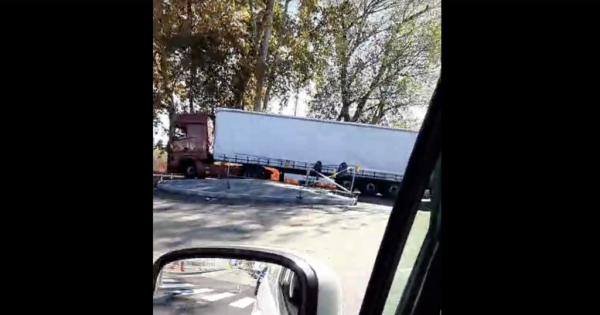 Un momento in apparenza critico, a cui hanno assistito molti testimoni e immortalato da un nostro lettore che stava passando proprio in quel momento diretto verso la tangenziale. L'autista del tir avrebbe effettuato diverse manovre per riuscire "a liberarsi" dalla rotonda, aiutato da alcuni operai e addetti del cantiere.